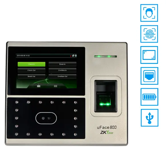 ZKTeco ha lanzado la terminal Múlti-Biométrica uFace800 para gestión de tiempo y asistencia además de aplicaciones de control de acceso, la cual soporta hasta 3.000 plantillas de rostros, 4.000 de huellas digitales y 10.000 tarjetas (opcional). Está equipada con la última plataforma de hardware y algoritmo de ZKTeco, que proporciona a los clientes, una interfaz de usuario más intuitiva y fácil de utilizar. Con el avanzado algoritmo para rostro y la tecnología múlti-biométrica, el nivel de seguridad de las verificaciones es mucho mayor.